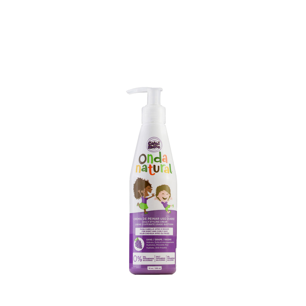 La Crema de Peinar de Uso Diario Onda Natural es perfecta para mantener el cabello hidratado, suave y sin frizz durante todo el día. Su fórmula con extracto de uvas nutre y protege, ideal para el uso diario.