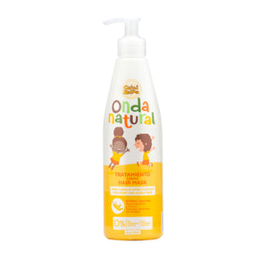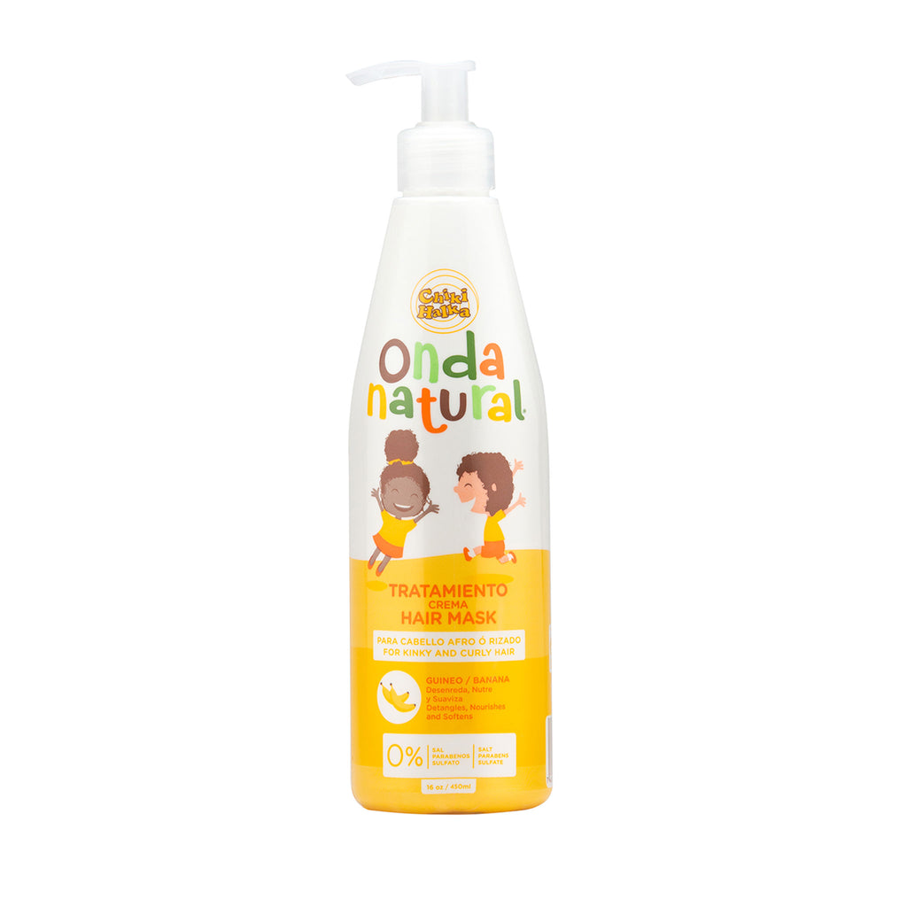 El Tratamiento Onda Natural es ideal para nutrir, suavizar y desenredar el cabello rizado o afro de los niños. Su fórmula con guineo restaura la hidratación y fortalece la fibra capilar, facilitando el manejo diario del cabello.