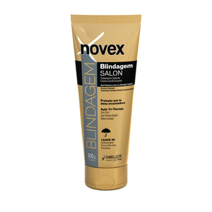 Novex Blindagem Thermal Protector actúa sobre el cabello creando una barrera protectora contra los efectos nocivos de la contaminación, el uso constante del secador de pelo, los procesos químicos y la humedad excesiva, reduciendo el encrespamiento, evitando que el color se desvanezca y promoviendo un sorprendente efecto liso y brillante en el cabello. Además, este protector térmico protege el cabello de los daños causados por la secadora y la plancha y combate la humedad excesiva del clima, lo que permite que el resultado de la secadora / plancha dure más tiempo.