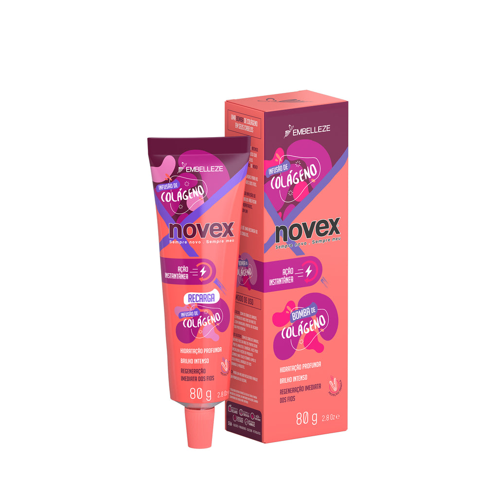 Recargue su belleza con la Recarga de Colágeno y obtenga una dosis extra de acondicionamiento para un cabello turboalimentado y reconstruido. La línea contiene Colágeno 100% vegetal y está indicada para cabellos finos, dañados, porosos y apagados que necesitan hidratación. Y además: ¡combatir la fragilidad y ganar hasta un 23% de aumento del diámetro de los hilos y un 80% más de brillo con protección térmica.