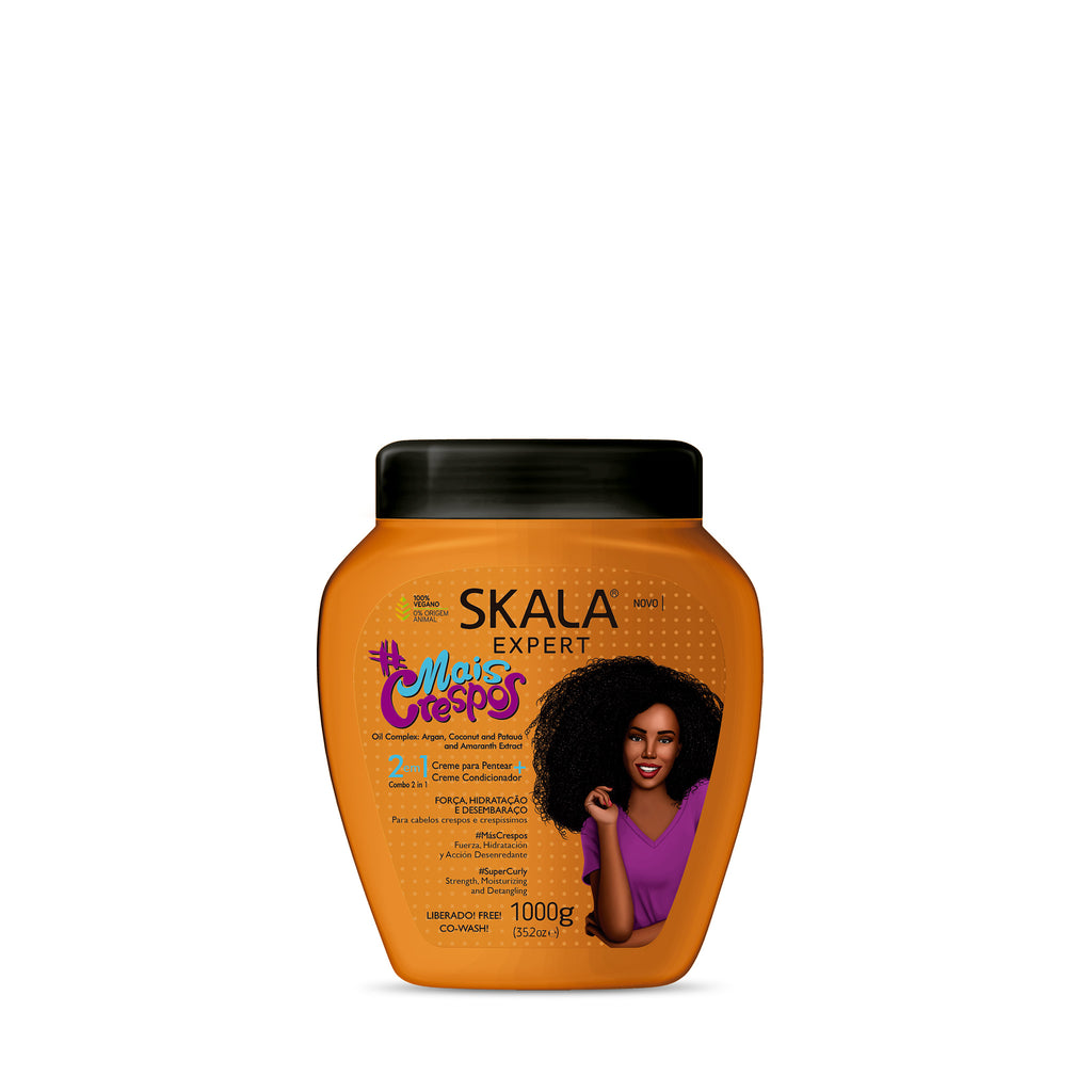 Skala Mais Crespos es un tratamiento capilar para cabellos crespos, rico en nutrientes que hidratan y desenredan todo tipo de cabellos rizados, crespos y ondulados. Puede ser utilizado como acondicionador. Mais Crespos nutre, da fuerza, previene la ruptura del pelo y da un brillo natural.