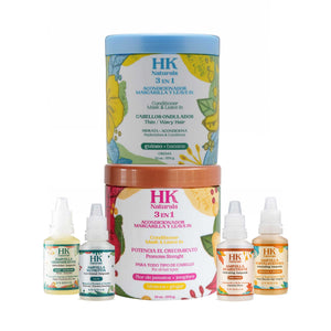 HK Naturals es una línea capilar vegana creada para quienes buscan belleza natural con practicidad. Inspirada en la frescura de los ingredientes botánicos, esta línea combina acondicionador, mascarilla y leave-in en un solo producto, ofreciendo hidratación, nutrición y suavidad en cada aplicación. Su fórmula cuida el cabello desde la raíz hasta las puntas, aportando brillo, manejabilidad y salud natural a todo tipo de texturas.